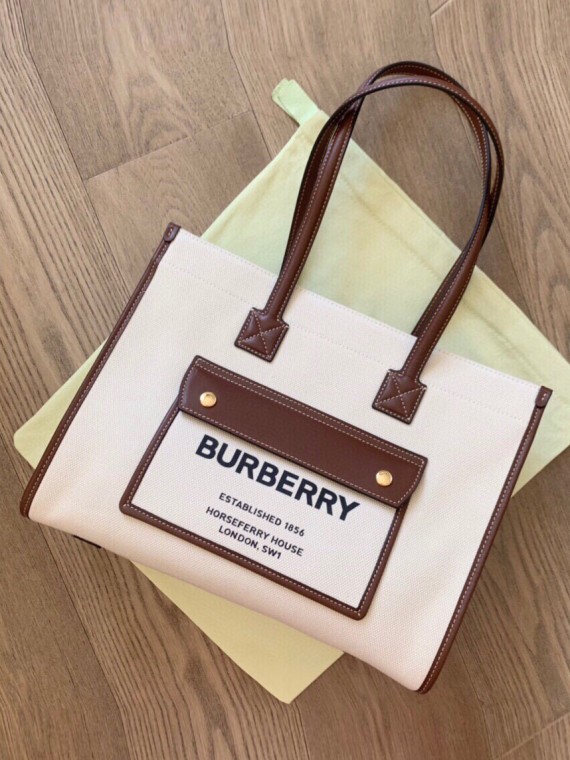 BURBERRY-버버리 투톤 캔버스 레더 프레야 토트-83 > 가방